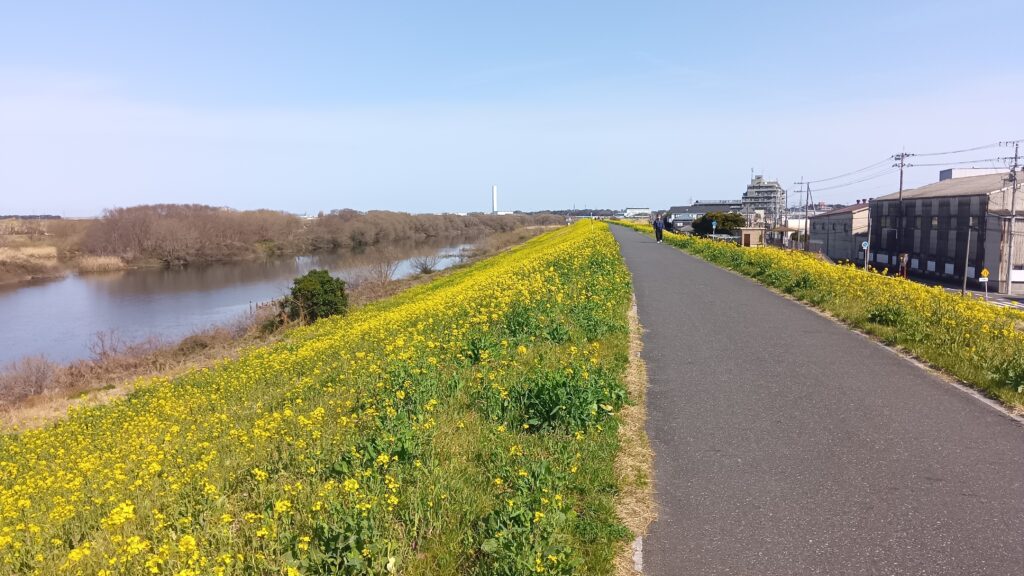 先週は荒川を走ったのですが、今週の江戸川の土手は菜の花の黄色と緑が濃くなってきたという感じですネェ。明日も暖かくなるみたいだし、さらに春らしくなっていくのでしょうかね。