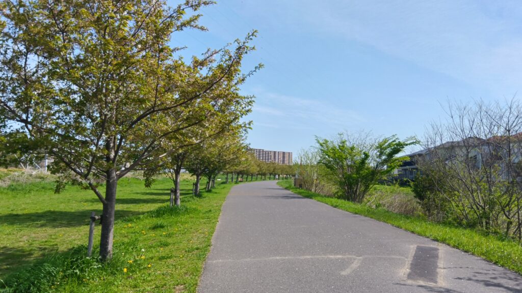 帰りは向かい風に悩まされましたが、印旛沼方面から海へ南下して帰路へ。途中の自転車道が工事通行止めになったりしてて迂回したせいか、想定よりも距離を走ってしまいますた~。
