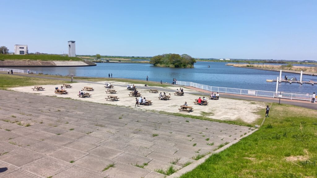 さらに走って道の駅 水の郷さわらに到着~。ここは食堂でお昼というよりも、テイクアウトカフェや土産物店でお弁当を買って、川辺のベンチで食べるのが気持ちよさそうな感じですた。