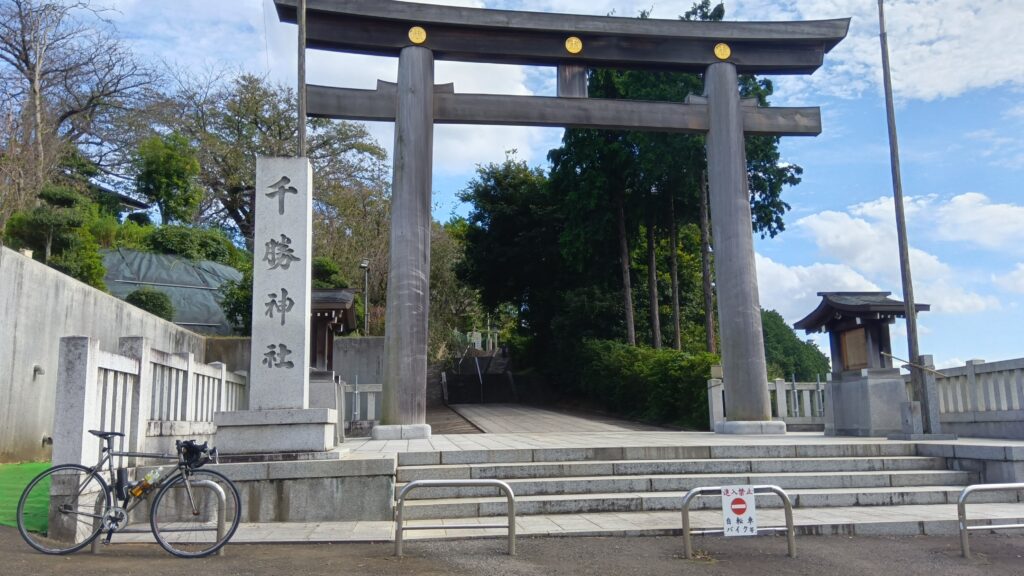 橋を渡ると千勝神社の看板があったのでそっちへ行ってみると、大鳥居がありますた。周りには何も無いのですが、帰ってから神社のホームページを見てみると、何だかすごく立派な神社みたいですネェ。