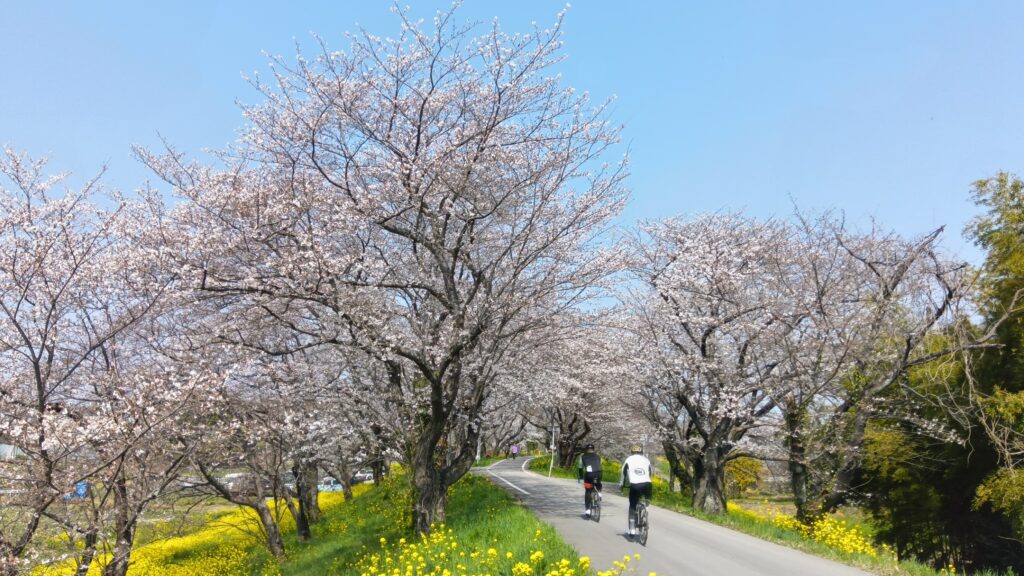 帰りは荒川右岸を走ることに。左岸とは違って静かですね。菜の花街道が続いていて、所々で桜も楽しむことができますた。更に走ってJR川越線付近で相棒と合流。今日は程よい引きで向かい風の中を走ることができますた~。