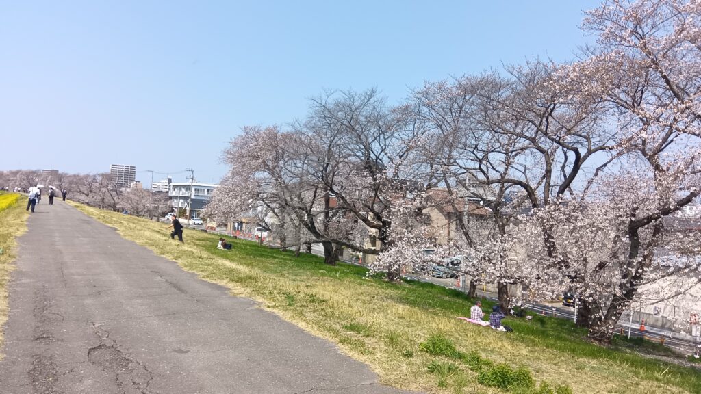 次の桜スポットは桜堤公園。こちらも満開とは言えませんが、良い感じに咲いてきています。この時期は混むのが分かっているので、走りに行くことがほとんど無かったのですが、ご家族連れ以外にコスプレイヤーの皆さんも凄いんですねぇ。
