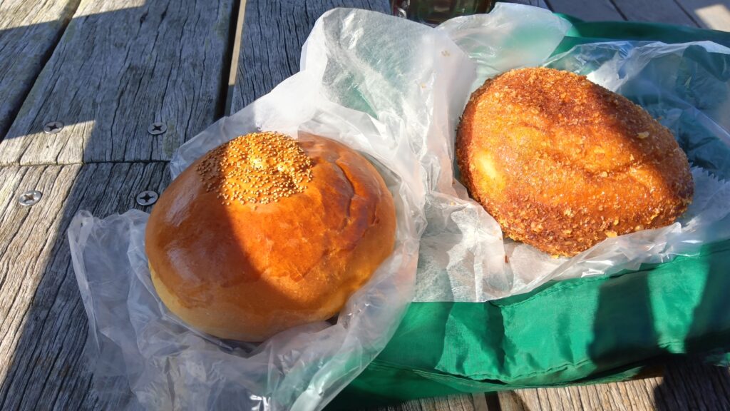 道の駅しょうなんのパン屋でお昼に購入したのは、カレーパンとアンパン(いつもにも増して茶色いランチですね (^,^; )。どちらもパン屋さんでは定番メニューですけど、ここのカレーパンはずっしりとしててサクサクで美味しいですネェ。 (@^~^@)