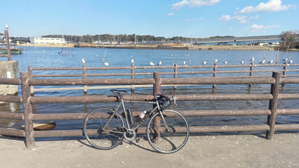 手賀沼では沼の風景と音を楽しむことができるベンチに座って少しゆっくりしようと思ったのですが、「ト…トイレ!ヘ(*¨)ノ」と尿意でさっさと道の駅へ。歳をとると冬のロングライドでは、トイレ・マネージメント(?)が大切ですネェ。