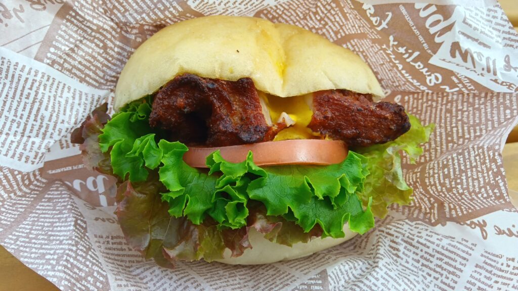 道の駅しょうなんのパン屋さんで購入したのはグリルチキンバーガー。ボリュームがありますネェ。